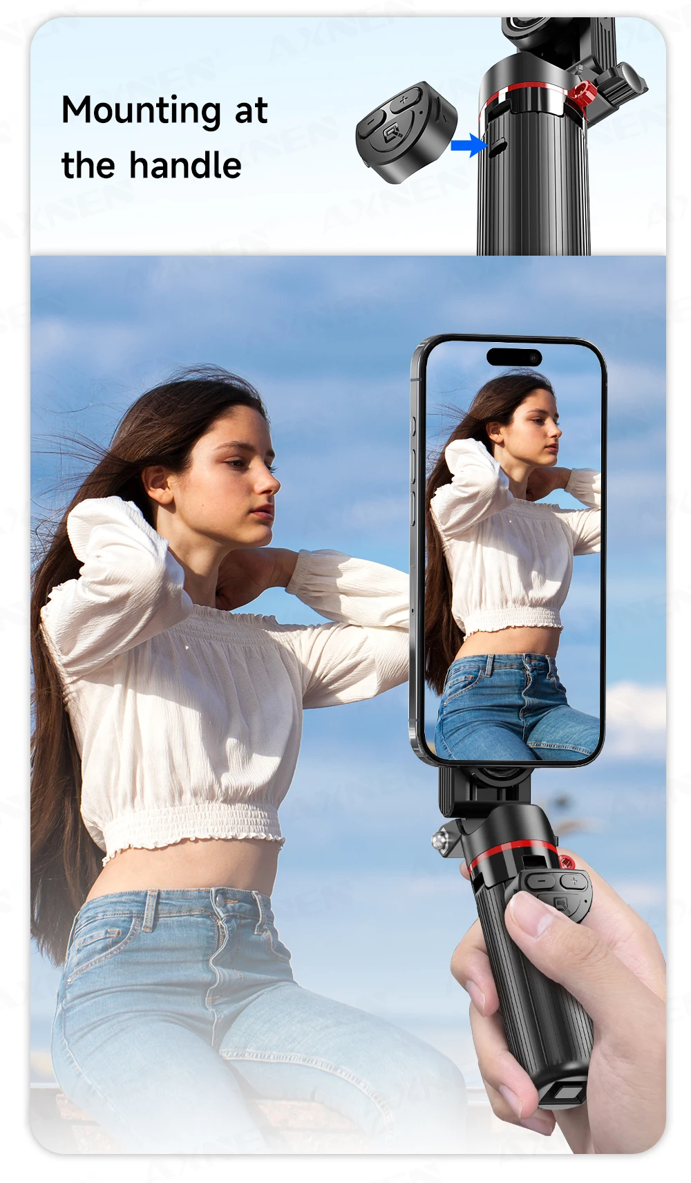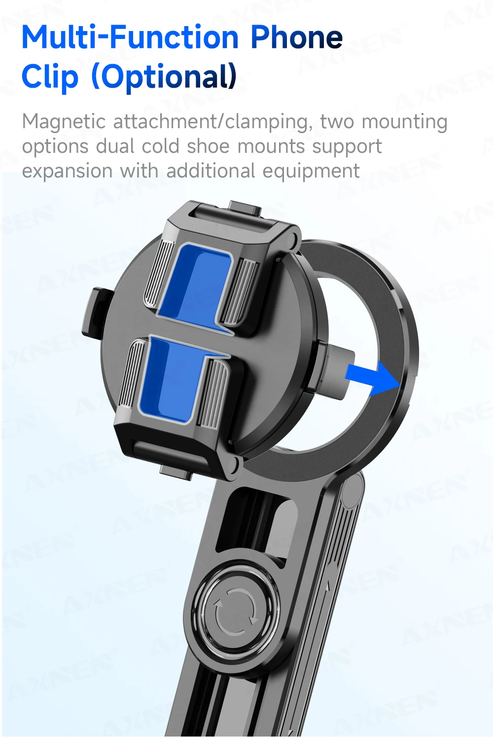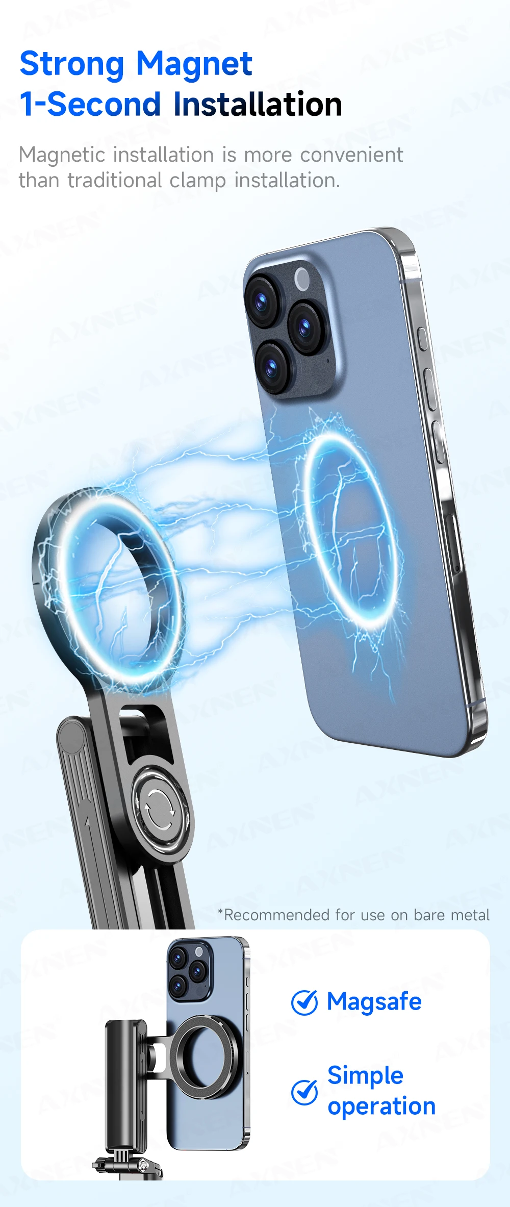 Magnetic Mini Selfie Stick Tripod for Cellphone with Extension Rod Wireless Remote, Fill Light Option, for Smartphone Vlog Shoot