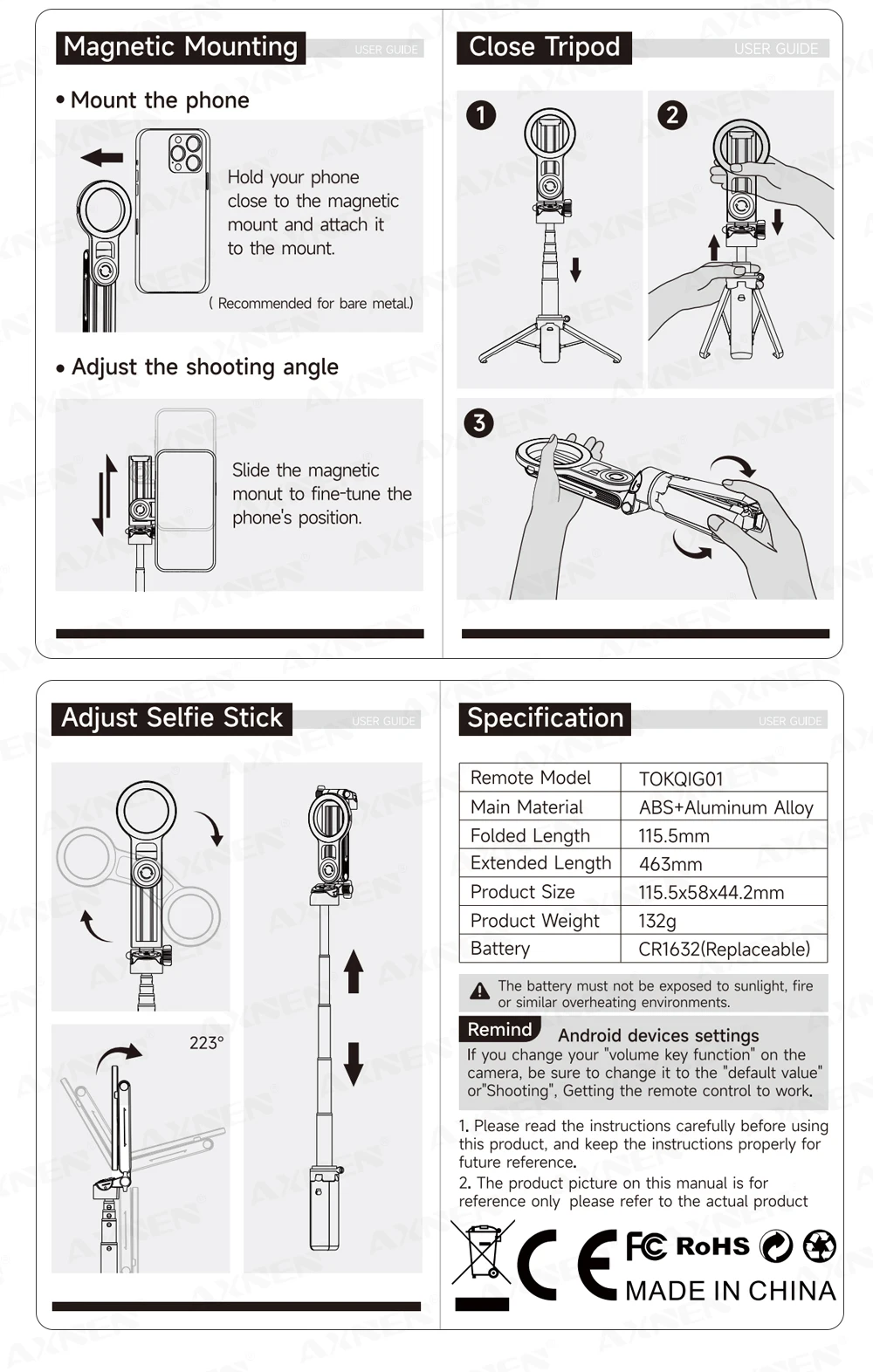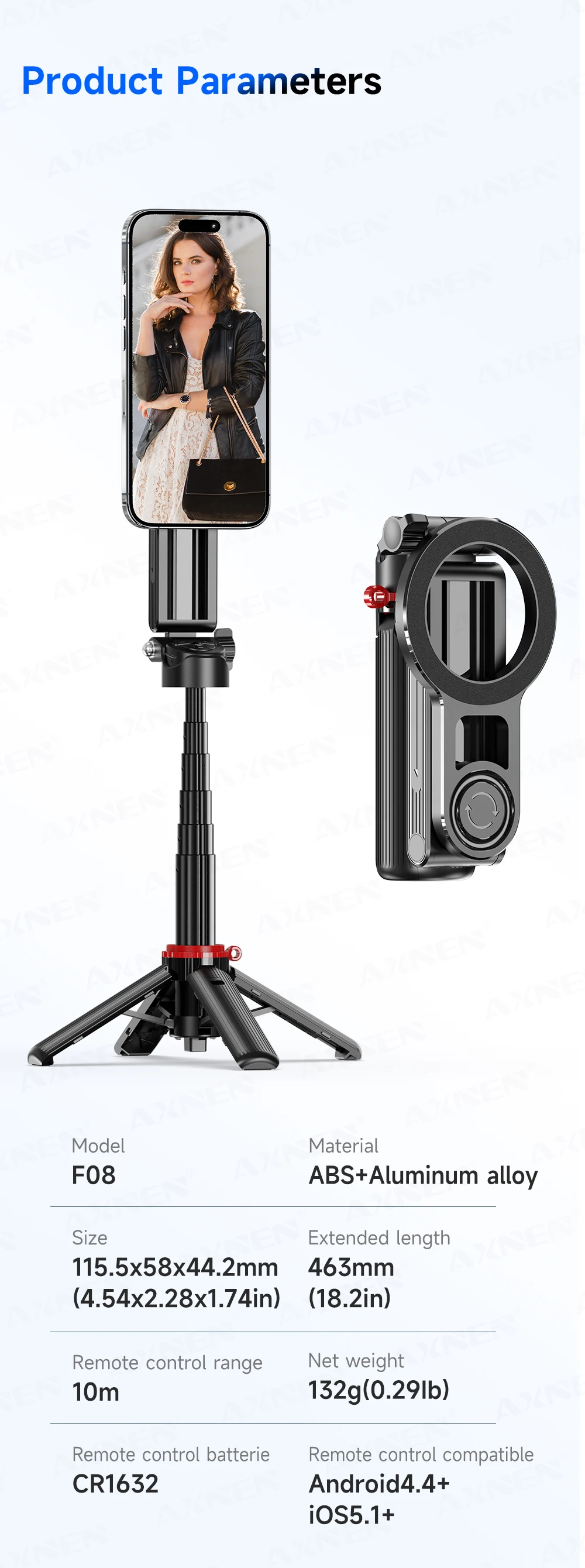 Model Number: F08 Mini Magnetic Selfie Stick Tripod