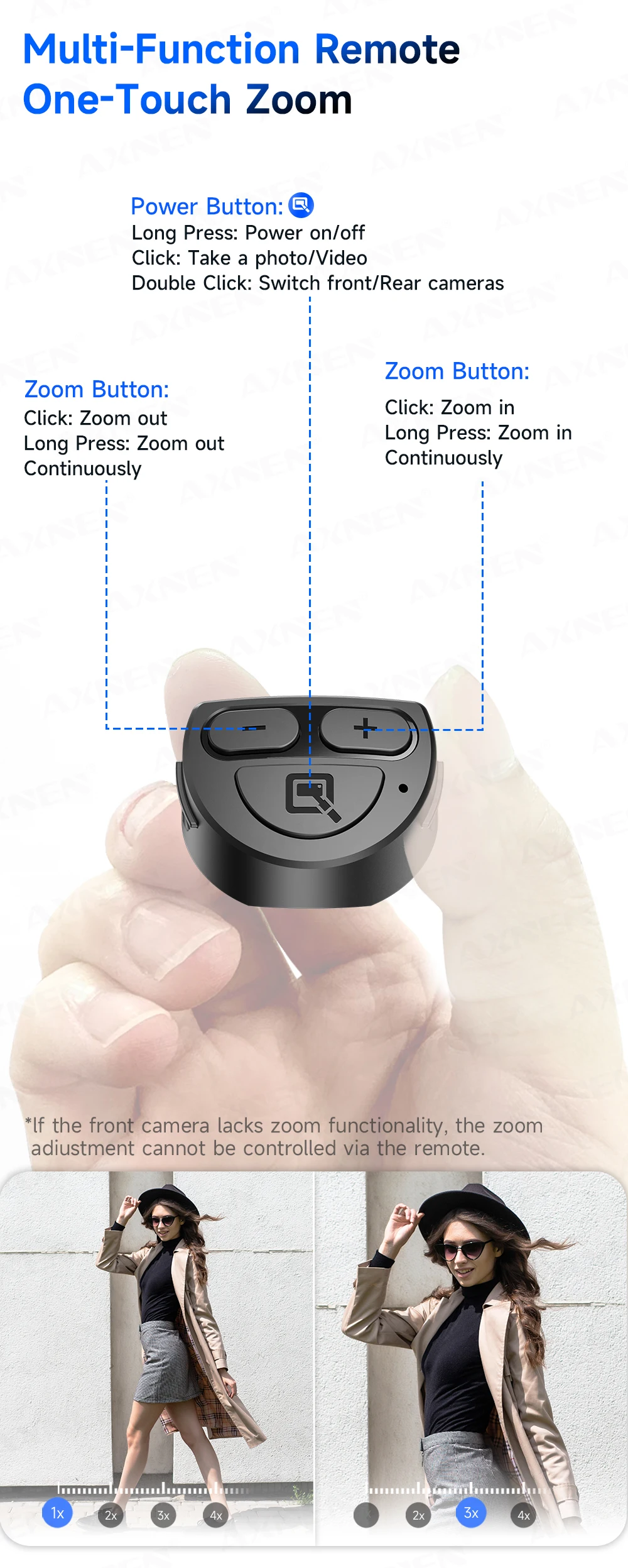 * if the front camera lacks zoom functionality, the zoom adiustment cannot be controlled via the remote.
